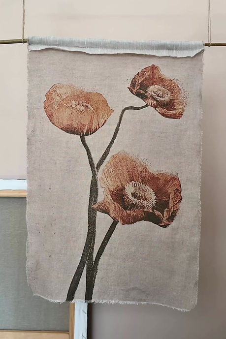 Fascinated by the botanic world, I create soft & natural floral tapestries. Inspired by the plants and flowers I meet and photograph during walks in nature. But also from sources like films, music, books and poetry. Mixed with my fantasy together with some paint.